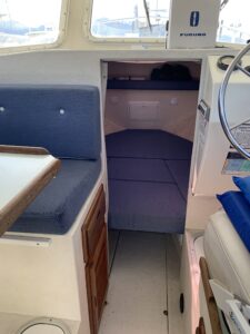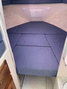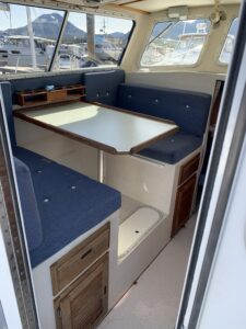 Inside the enclosed cabin you’ll find a forward V-berth and onboard head, giving guests a comfortable place to warm up, relax, or take a break from the weather if needed.